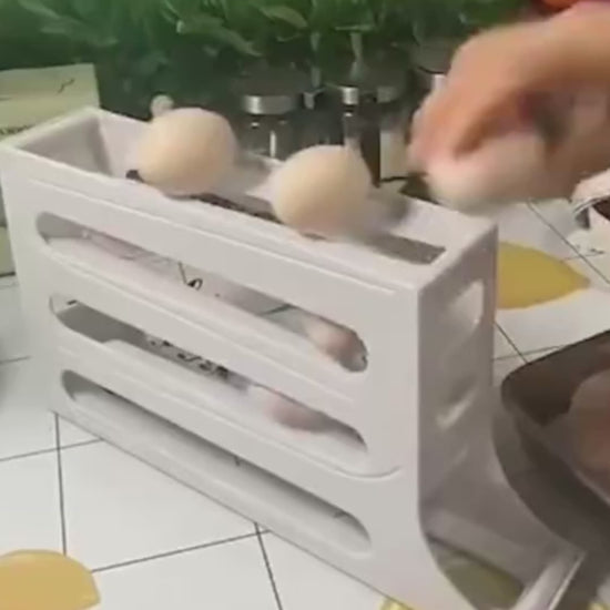 Store up to 30 eggs in a compact, space-saving rack with automatic rolling design. Made from premium plastic, it fits perfectly in your fridge: 36 × 20 × 7 cm. Eggs roll forward for easy access — no stacking, no mess.