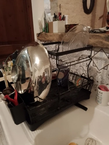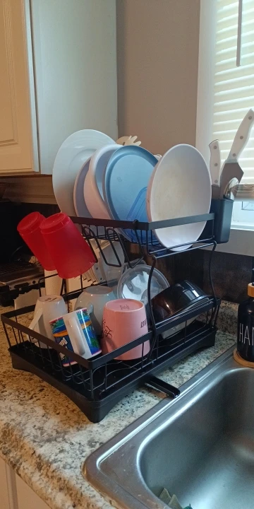The large 2-tier design provides ample space for plates, bowls, cups, and utensils, helping keep your countertop organized.